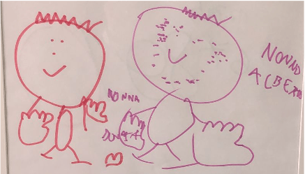 Il nonno non è stato il primo della nostra famiglia a lasciarci. Due mesi prima, la nostra anziana cagnolina, con cui Diego viveva da quando è nato, si è ammalata ed é morta. Nonostante  a livello personale non siamo molto  vicini alle questioni religiose, la scuola dove Diego ora studia è di orientamento cattolico e abbiamo deciso che non avrebbe fatto danno proporre una visione confortante della fine della vita. Gli abbiamo mostrato un disegno con un meraviglioso arcobaleno tra le nuvole e gli abbiamo detto che ora era lì, in paradiso, e che, anche se non potevamo vederla, ogni volta che avessimo pensato a lei, sarebbe stata con noi, nel nostro cuore. Anche se non sapevamo fino a che punto Diego avesse capito, accettò quell’improvvisa assenza. E come spesso accade con gli animali, che ti aiutano in modo discreto, lei ci ha aiutato ad affrontare con Diego la perdita di una persona.